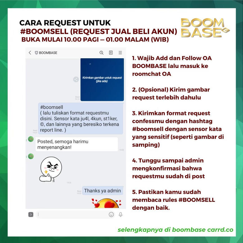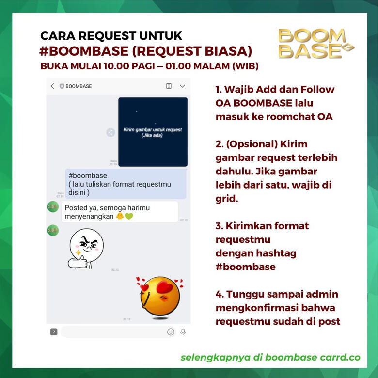 | 3. | Wajib menggunakan tagar #BOOMBASE |